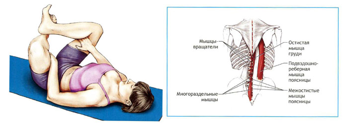 Растяжка мышц, разгибающих туловище и поворачивающих ногу наружу в тазобедренном суставе