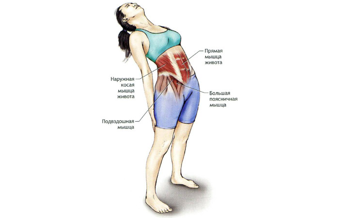 Мышцы живота (наружная косая мышца живота, внутренняя косая мышца живота, прямая мышца живота) и квадратная мышца поясницы сгибают туловище, позволяя выполнить наклон вперед. В сгибании туловища участвуют также подвздошная и большая поясничная мышцы.