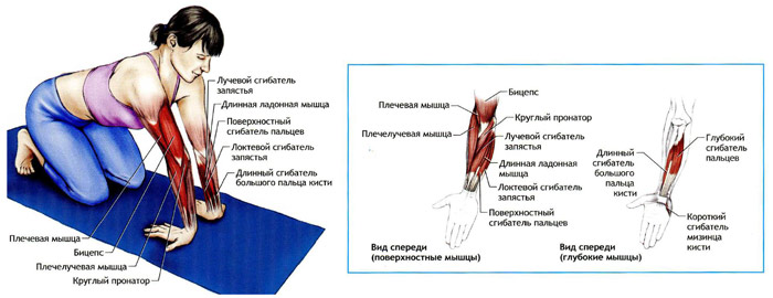 Растяжка мышц, сгибающих руку в лучезапястном суставе